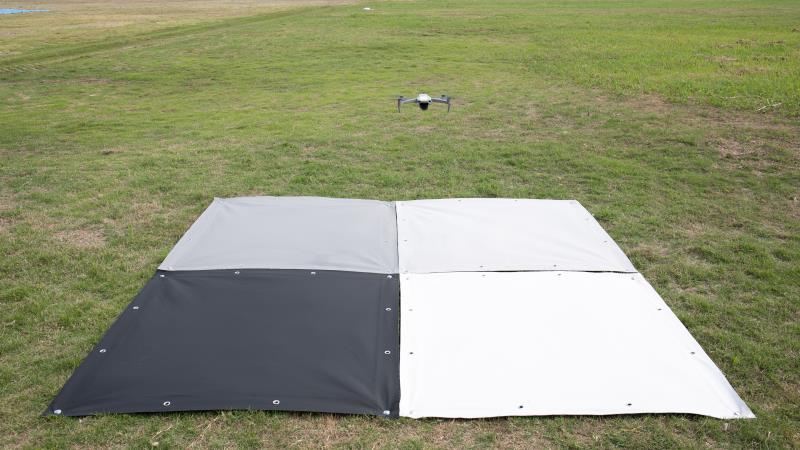 無人機載相機靶標采用表面涂布特殊光學涂層的PU革材料制作而成。在可見光波段范圍具有較好的光譜平坦性和朗伯特性。主要針對無人機遙感相機航飛中的輻射定標和響應線性標校。表面反射率由5%、10%、20%、30%、40%、50%、60%和70%組成。